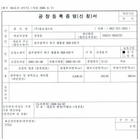 인증 | 공장등록증 페이지 정보 작성자 관리자 작성일10-10-15 09:21 조회16,675회 댓글0건 관련링크 이전글 다음글 목록 본문 공장등록증 댓글목록 등록된 댓글이 없습니다. 이전글 다음글 목록